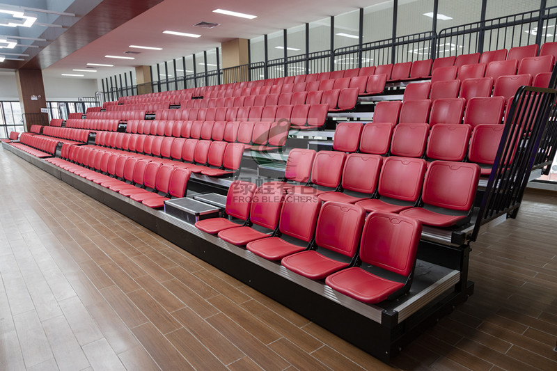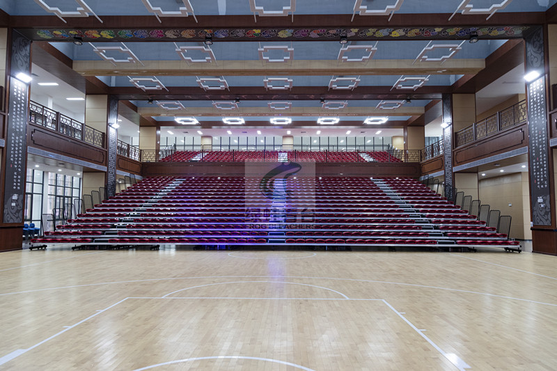 體育館看臺全部設計為伸縮看臺,二樓為7層,一樓為16層,全部采用電動伸縮。座椅采用翻板靠背吹塑椅,整體美觀大氣。