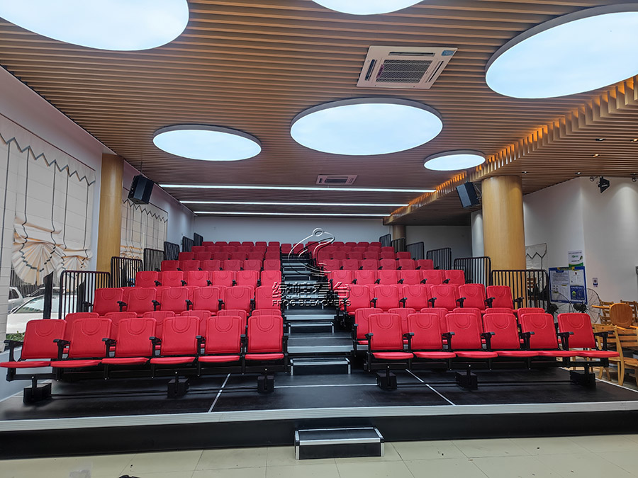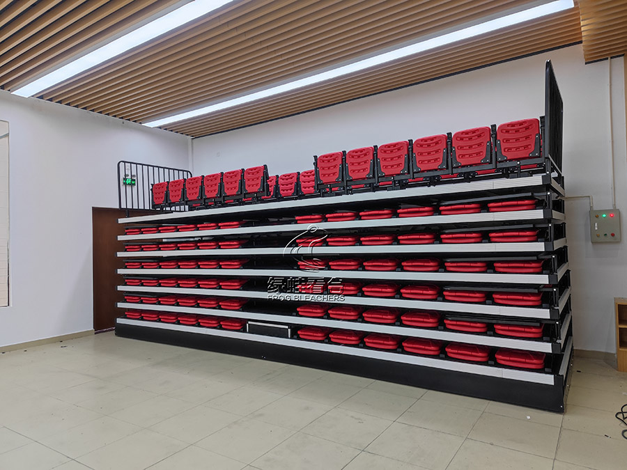 本次綠蛙看臺承辦南華小學安裝電動伸縮看臺項目,共安裝?170位,為一層雙排后置式吹塑座椅。可以根據不同的用途和功能進行調節,很方便快捷,不使用的時候折疊起來就可以了,不用耗費很大的存儲和運輸方面的成本。