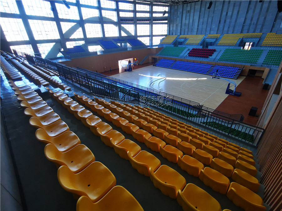 綠蛙看臺承接的正是該籃球場館的看臺座椅項目,共安裝搭建固定座椅2271個, 中靠背吹塑椅電動伸縮看臺784個, 低靠背吹塑椅主席臺椅50座,安裝的電動伸縮看臺可針對情況隨時調整,方便賽事的開展與日常場館管理,實在是方便。座椅通過顏色分區,醒目且富有運動活力的氣息,目前看臺座椅設備已全部完成安裝調試,可隨時投入使用。