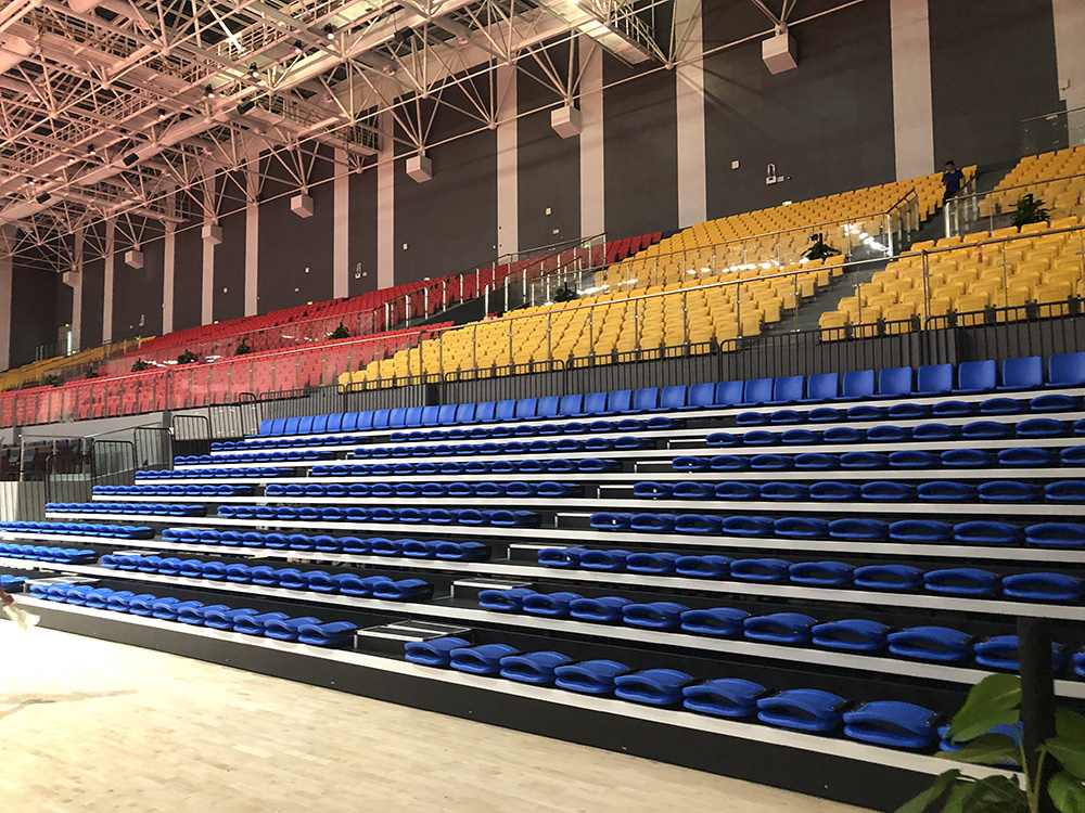 綠蛙看臺產品最終在眾多競爭者中脫穎而出,成為韶關體育公園的看臺座椅產品的分包供應商。從5月份起,我們就進入緊張的安裝環節,在廣東省青少年乒乓球錦標賽比賽日前,成功的將4500位的固定座椅安裝完畢。并于7月4日將活動看臺1600位安裝完畢。室內體育館整體氣勢磅礴,寬敞明亮,可媲美國內任何一個甲級體育館。