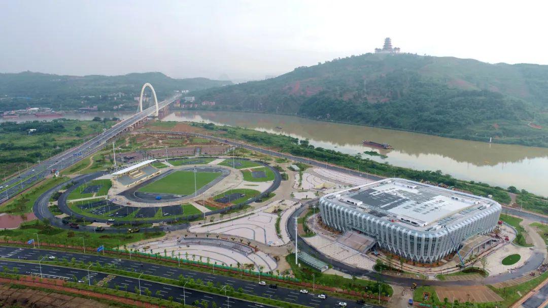 第二部分是400米塑膠跑道及天然草皮標準的足球場和2000座看臺,其中足球場周邊還有6片網球場和5片籃球場。體育館則按大型場館規模要求設計,包含了比賽館、訓練館、體育室等,功能布局除滿足比賽使用功能要求外,同時滿足賽后利用的經濟性和便利性,可舉辦籃球、排球、羽毛球、乒乓球等全國性或亞運會的單項比賽,也滿足城市景觀和日常群眾體育運動健身需求。