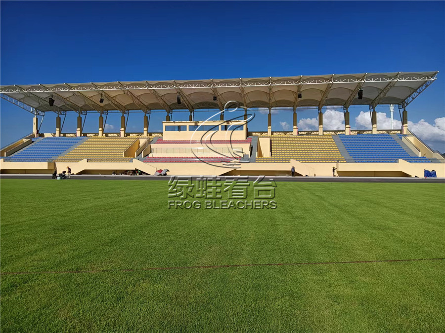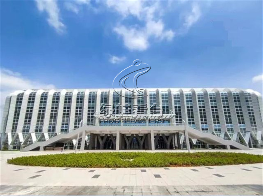 韶州體育公園項目是韶關市“一橋三園三路”項目的重要工程,項目總建設面積3.78萬平方米,綠蛙看臺參與安裝的有兩處。第一部分是坐席6000座的甲級體育館,建筑面積約2.7萬平方米。