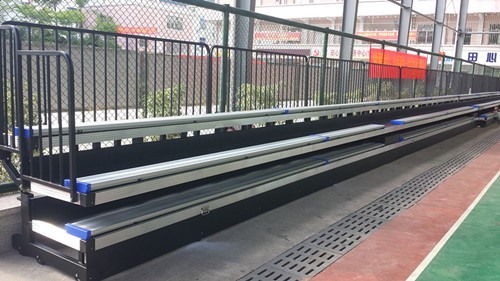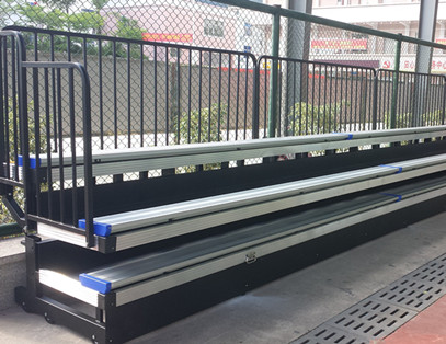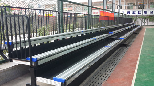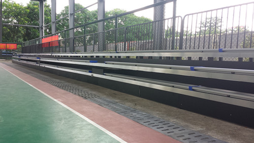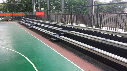 深圳坪山田心社區(qū)籃球場是服務于社區(qū)周邊的籃球場,籃球場上有頂棚防曬防雨,東側(cè)有水泥臺階看臺,但無椅子。為增加更多的觀眾看臺位置,經(jīng)社區(qū)居委會商討,并與綠蛙公司一同研究,決定采用鋁合金座板手動伸縮看臺,在原有場地西邊成功地完成三層看臺的安裝。看臺既美觀又實用。