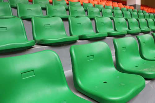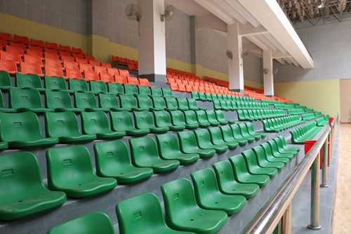 郴州六中學(xué)校體育館采用固定看臺,中靠背中空吹塑椅,綠色與橙色相結(jié)合,營造出活潑動感的氛圍,與運動木地板渾然一體。
