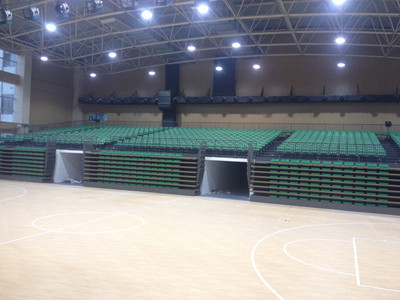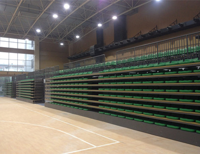 活動看臺座椅采用高密度中空吹塑低靠背座椅,座椅規格為:座高200mm,座寬420mm,座深450mm,背高160mm,中心距480mm。前置式安裝,共計8層。