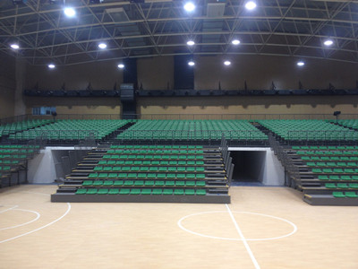 本看臺分為固定看臺和活動看臺兩部分。固定看臺不同于傳統的混凝土階梯平臺,全部采用鋼結構做成。支撐架采用工字鋼高密度打造,上封鋼板做平臺。在平臺上安裝帶支架中靠背吹塑椅,整體美觀大方,與下方活動看臺渾然一體。