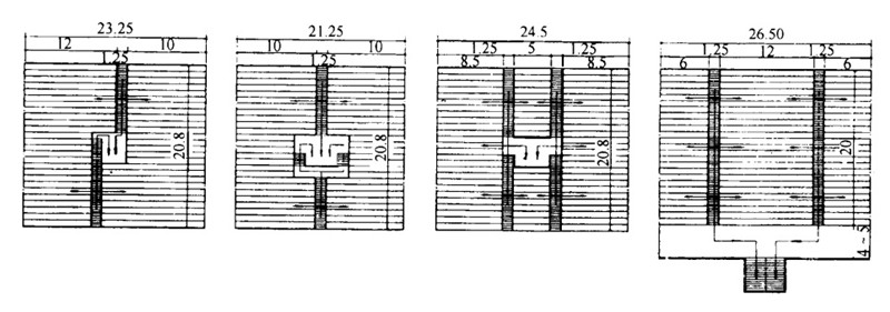 1)看臺平面布置沿跑道邊處采用直線或曲線進行,一邊布置看臺,常布置于西向;如為兩邊布置時布置在東西、東南、東北等;如為三邊布置時一般布置在東西南或東南北;如為四邊式(周邊式)。如下圖