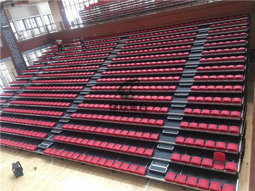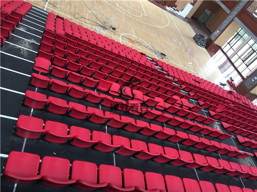 湛江市北大附校體育館是復(fù)合式電動伸縮看臺,看臺上配用前置式中空吹塑折疊翻板椅,場面壯觀,氣勢恢宏。