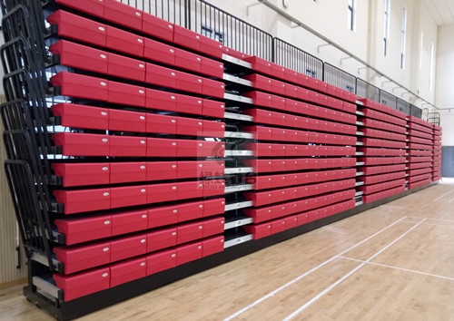 新校區(qū)的體育館也是獨(dú)具一格,綠蛙電動伸縮看臺起到了錦上添花的作用。看臺最高層為12層,分為左右兩邊,共計890余位,采用的是中空吹塑平靠背座椅,完美無縫對接,色彩分明,熠熠生輝。