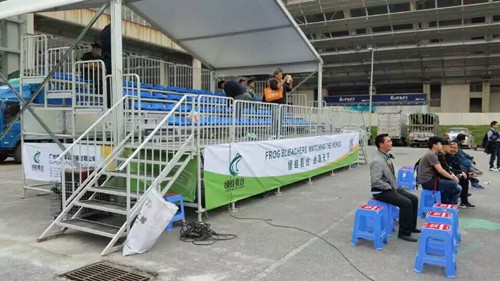 第十四屆廣州國際專業(yè)燈光、音響展覽會(huì)于2016年2月29 – 3月3日在廣交會(huì)展館A區(qū)成功舉行,期間綠蛙看臺(tái)在館內(nèi)館外分別展出了伸縮看臺(tái)、鋁制看臺(tái)、可拆卸拼裝看臺(tái)。來自國內(nèi)外的舞臺(tái)燈光音響行業(yè)的朋友紛至沓來,對(duì)綠蛙看臺(tái)的產(chǎn)品表示高度肯定。室外音響演示場(chǎng)地,綠蛙的可拆卸拼裝看臺(tái)發(fā)揮中流砥柱的作用,主辦方對(duì)綠蛙公司提供的可拆卸拼裝看臺(tái)表示高度認(rèn)可。