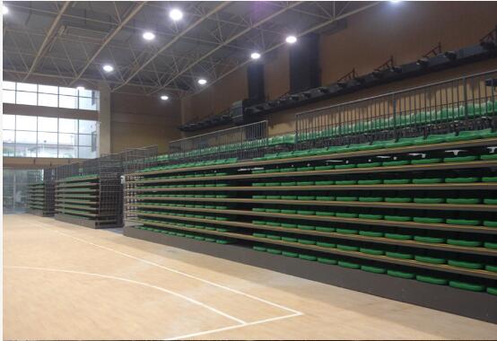 ?郴州柿竹園礦山體育館看臺為近來要求比較特殊的項目,本次項目分為固定看臺和伸縮看臺。固定看臺舍棄了水泥臺階的做法,直接采用鋼結構搭建,前段再接伸縮看臺。綠蛙看臺在項目前期與業主方進行了大量的全方位的溝通,最后設計出了該看臺方案。經過幾個月的施工與安裝,最終呈現在我們面前的看臺非常美觀,非常有氣勢。