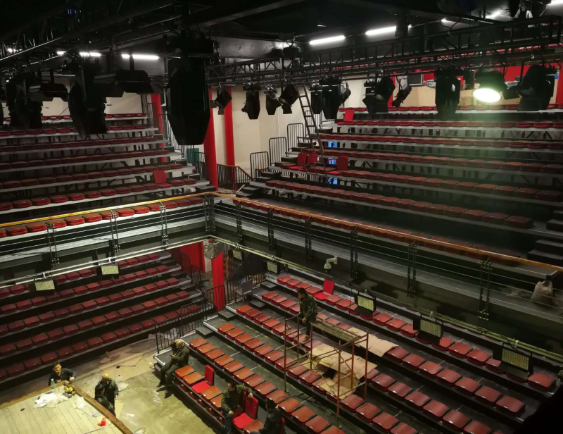 觀眾席采用高靠背軟包座椅手動伸縮看臺,現(xiàn)場能容納500名觀眾。為力求節(jié)目最好的觀賞效果,綠蛙看臺根據(jù)整個場館的舞臺及空間位置特點,對上下樓的每組看臺起高及錯層高均為量身定做。服務(wù)好客戶,是綠蛙看臺的本職所在。
