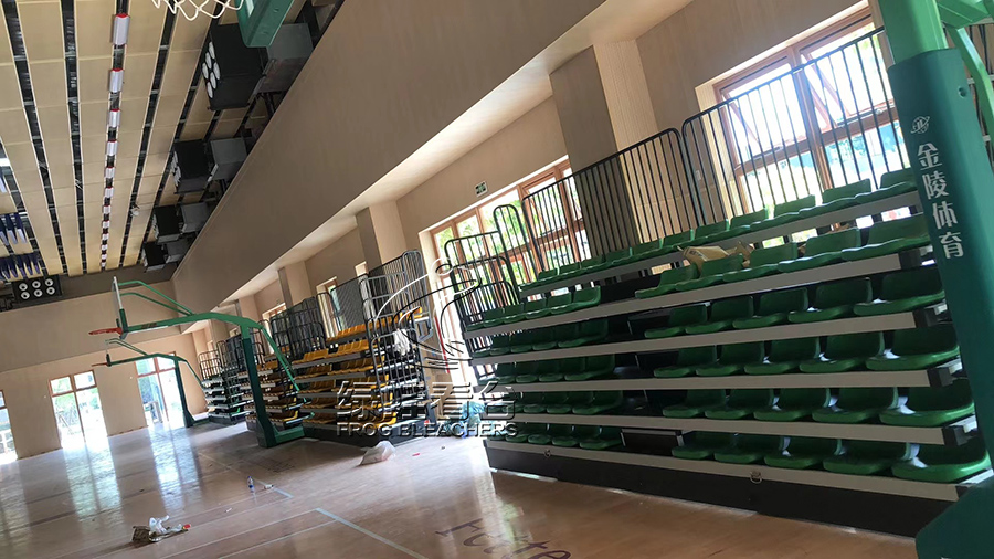 綠蛙看臺為廣州斐特思公學籃球館安裝伸縮看臺,豐富學生的體育活動