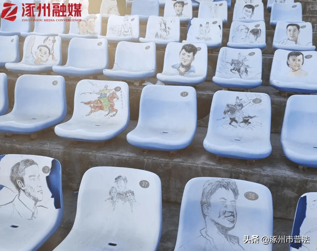 如果你有一雙熟練的手,你希望你能把美麗的畫面帶到哪里?近日,在涿州體育中心,又增添了一道美麗的風景線??磁_座位之上出現了栩栩如生的畫面,吸引了過往市民的注意,包括有簡單的肖像畫、風景畫和與涿州有關的歷史故事畫。這張照片實際上是由一位76歲的老爺爺繪畫的。