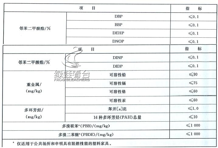 4、《GB28481-2012塑料家具有害物質(zhì)限量》對上述有害物質(zhì)限量的規(guī)定