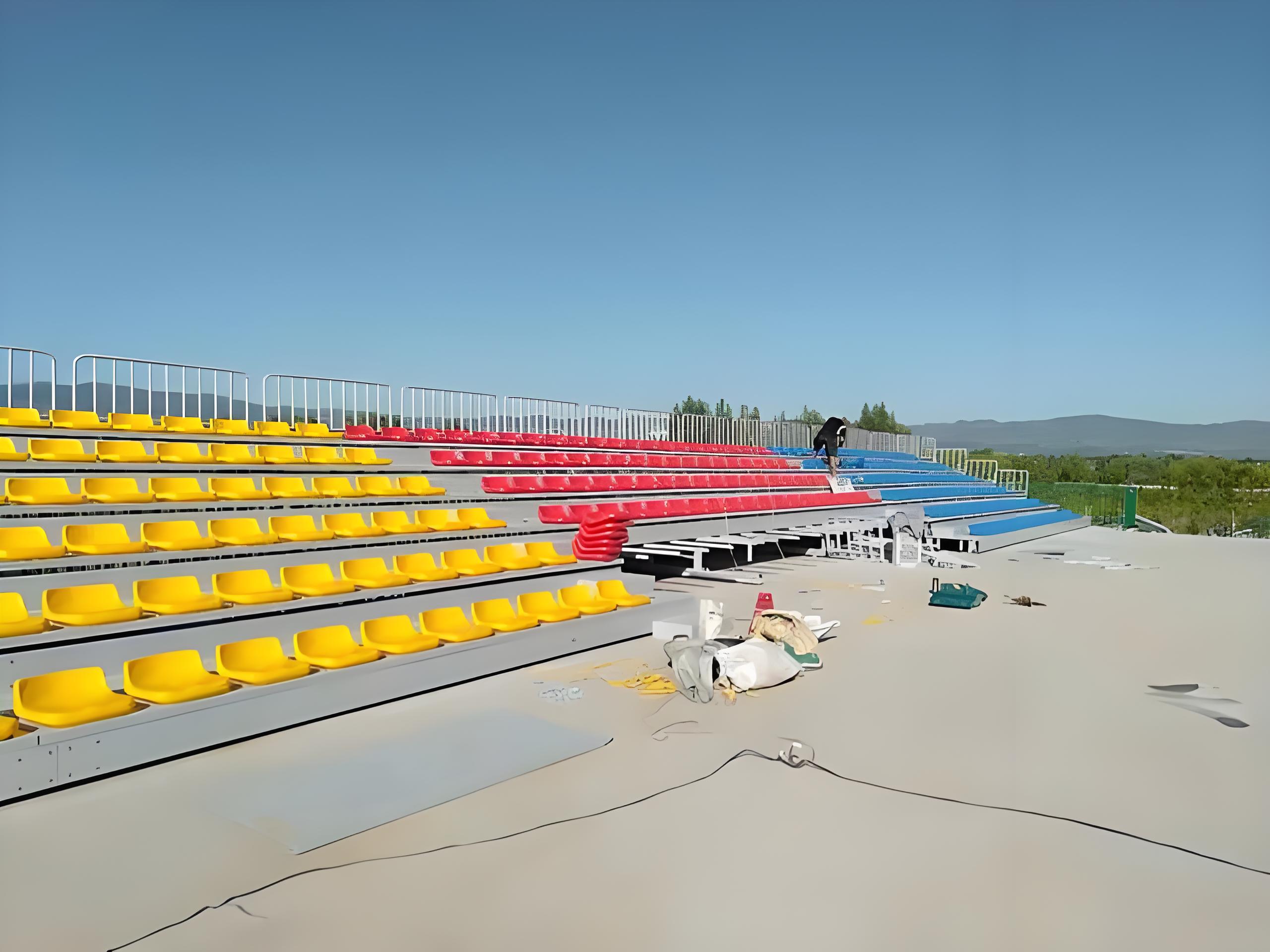 可調(diào)節(jié)性:伸縮看臺座椅的伸縮功能是其適應(yīng)戶外環(huán)境的重要特點之一。通過調(diào)節(jié)座椅的伸縮長度和排列方式,可以根據(jù)不同的活動規(guī)模和場地需求進(jìn)行靈活調(diào)整,提高座椅的利用率和適應(yīng)性。