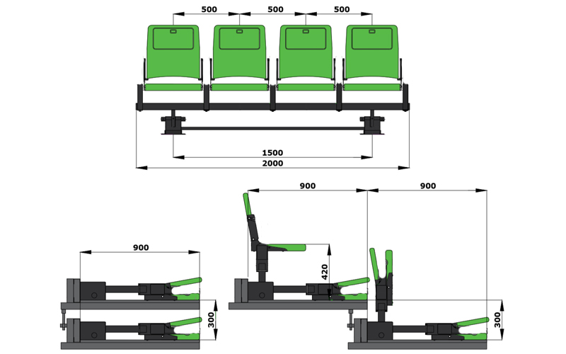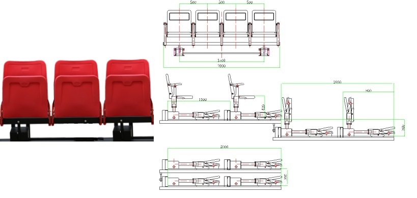 b.后置式高靠背翻版椅伸縮看臺(一層兩排)