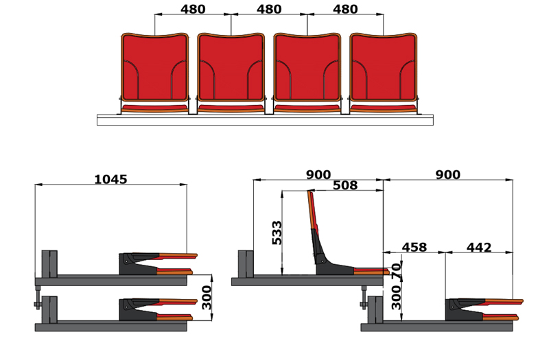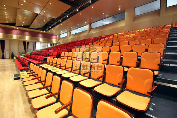 伸縮看臺又稱活動看臺,伸縮看臺拉伸成臺階形時,翻起座椅供觀眾舒適地欣賞節目,收縮成匣子狀時則占用很少的空間,讓出場地以安排他用。伸縮看臺可充分利用室內的有限面積,滿足不同功能情況下的多座位要求。