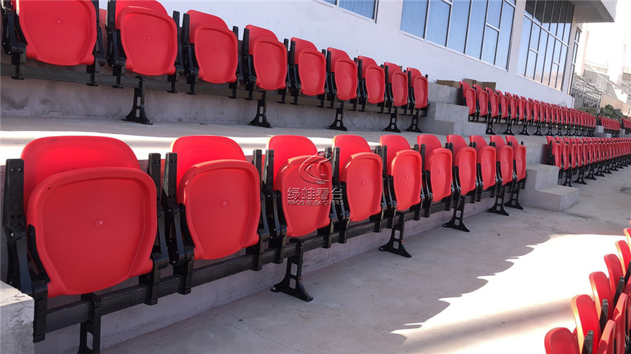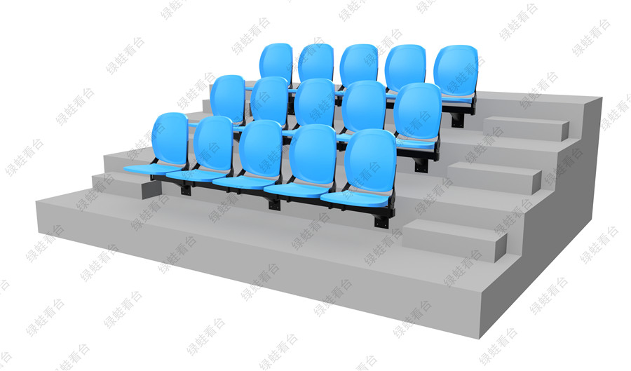座椅采用立裝方式的座椅,座椅支架選用優質鋼材,噴涂工藝。壓鑄鋁制座椅連接件采用靜電噴塑處理。支架采用M10×80的擊芯膨脹螺栓與看臺水泥壁面相連,每個膨脹螺栓可抗力100kg以上。