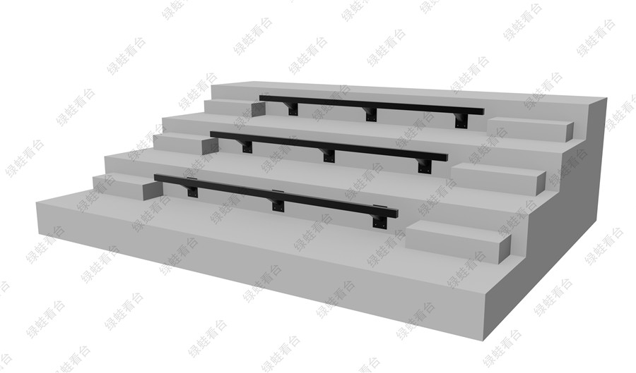 1)量出需要安裝座椅的區段的尺寸,一般是指固定看臺踏步通道與踏步通道之間的區間,然后對照設計圖紙,看需要多少個支架腿,分布好(FrogSport)。