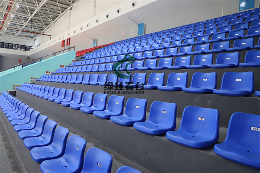 固定看臺座椅(綠蛙牌)可分為平裝、側裝、立裝等不同安裝方式的座椅,也可分為一體椅和翻板椅,根據場地的不同需求而定。