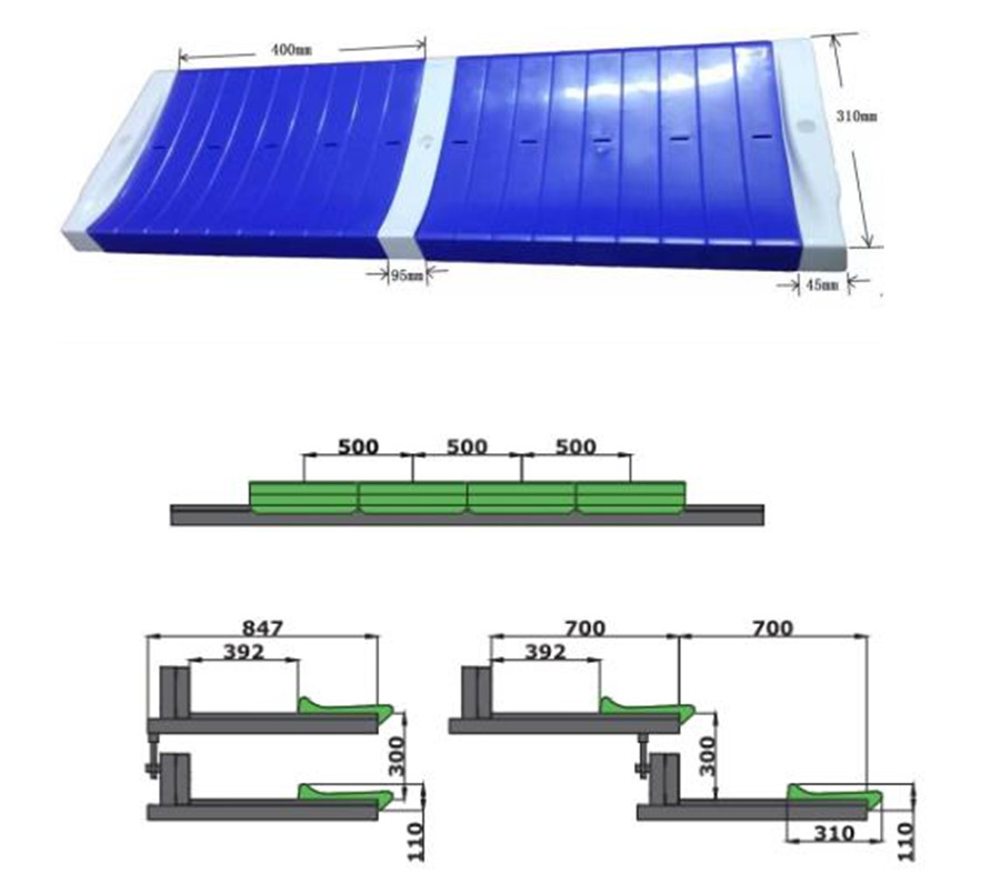 (2)看臺整體為垂直支撐結(jié)構(gòu)。看臺層寬700mm,尾層寬400mm;首層高330mm,其他層高300mm。(伸縮看臺為定制產(chǎn)品,可根據(jù)實(shí)際場地和客戶需求,略微調(diào)整尺寸。)