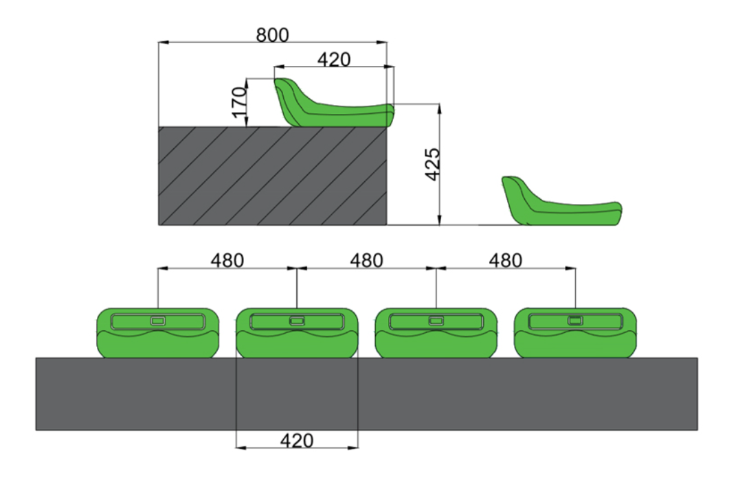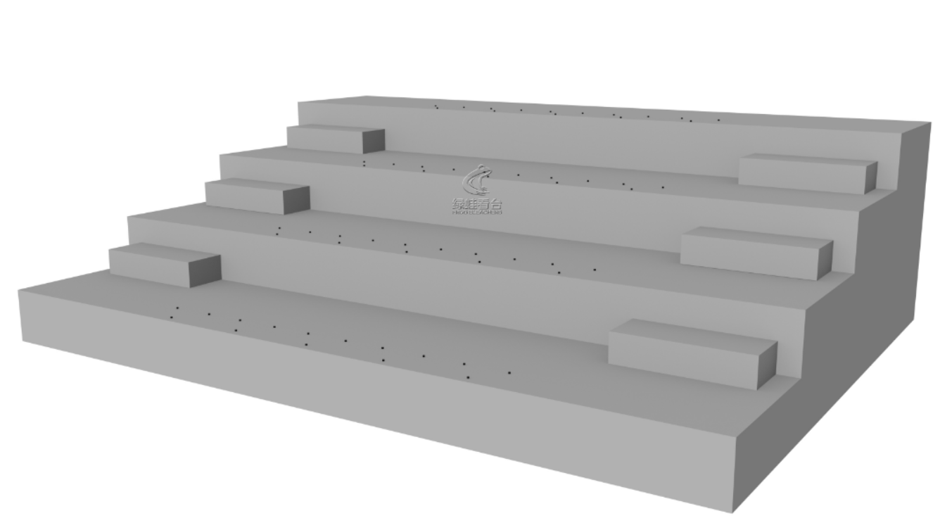 1)量出需要安裝座椅的區(qū)段的尺寸,一般是指固定看臺踏步通道與踏步通道之間的區(qū)間,然后對照設計圖紙,看需要多少個支架腿,分布好(FrogSport)。