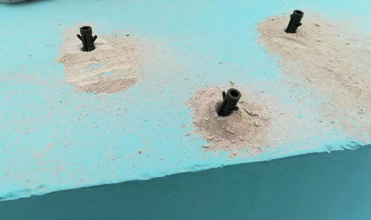 4)再將座椅鎖定膨脹膠粒的孔位,然后將膨脹螺栓通過座椅的孔位打下去,直至與膨脹膠粒鎖死。