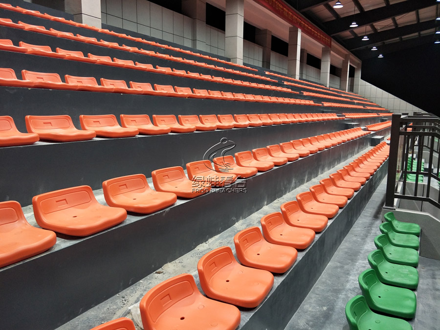固定看臺座椅(綠蛙牌)可分為平裝、側裝、立裝等不同安裝方式的座椅,也可分為一體椅和翻板椅,根據場地的不同需求而定。