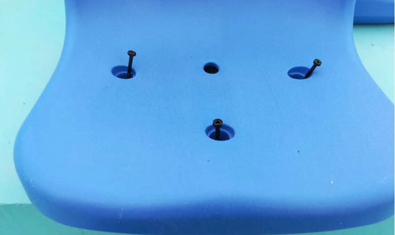 座椅上有三個安裝孔,透過座椅安裝孔將座椅直接安裝在看臺板面上,不需要其他金屬件。該款座椅三個安裝孔將中空椅的上面和下面連接起來,三個連接結構就是三個支撐點,使得該款綠-蛙座椅有相比其他中空吹塑椅更為優(yōu)越承重性能。
